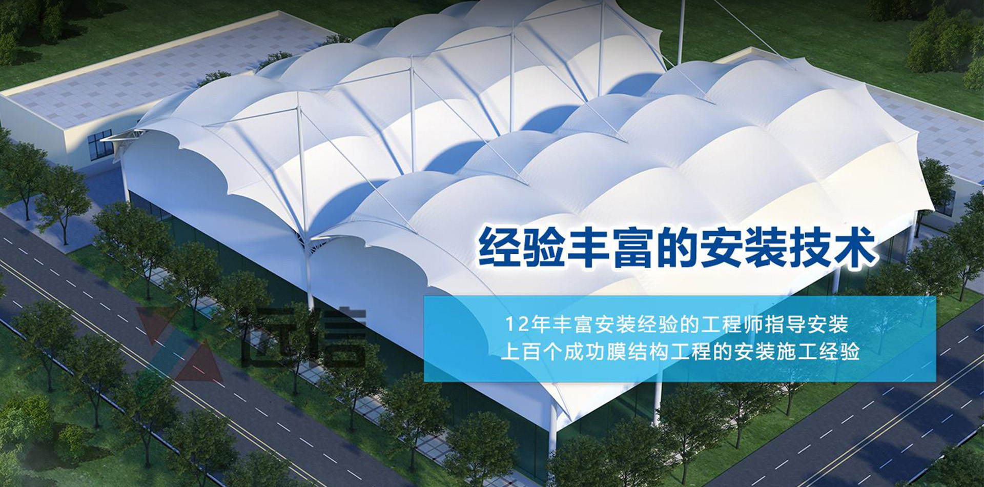 一家專業的膜結構空間結構設計、方案定制、制作安裝的專業化公司在生產制造方面,為了保證膜結構安裝質量和使用年限,遠信膜結構工程公司采用了現代化的生產車間,公司擁有完整的專業膜材檢測設備、自動裁剪設備、大型軌道行走式PTFE及PVDF熱合設備。同時,公司擁有豐富的膜結構計算分析、設計與施工經驗,集設計、制作、安裝為一體。